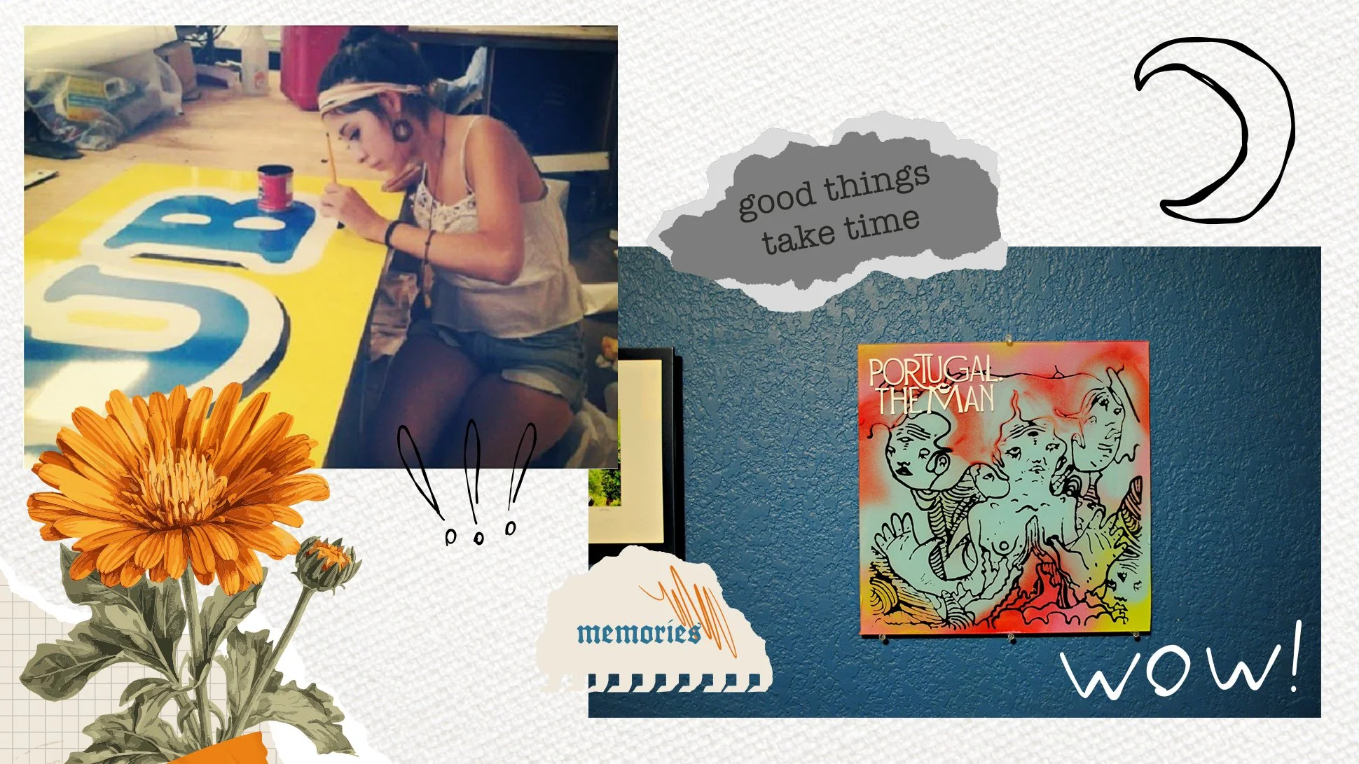 But as a teen, I started saving the scraps. I’d turn them into little band-inspired art pieces. I would cut vinyl, spray paint the backs, and design the displays with my whole heart. I think I was 14 or 15 when I walked into a music store in Hesperia with a few pieces I’d made. It was my idea, and my mom encouraged me to go for it. I was nervous as hell, but I asked if they’d let me sell them.